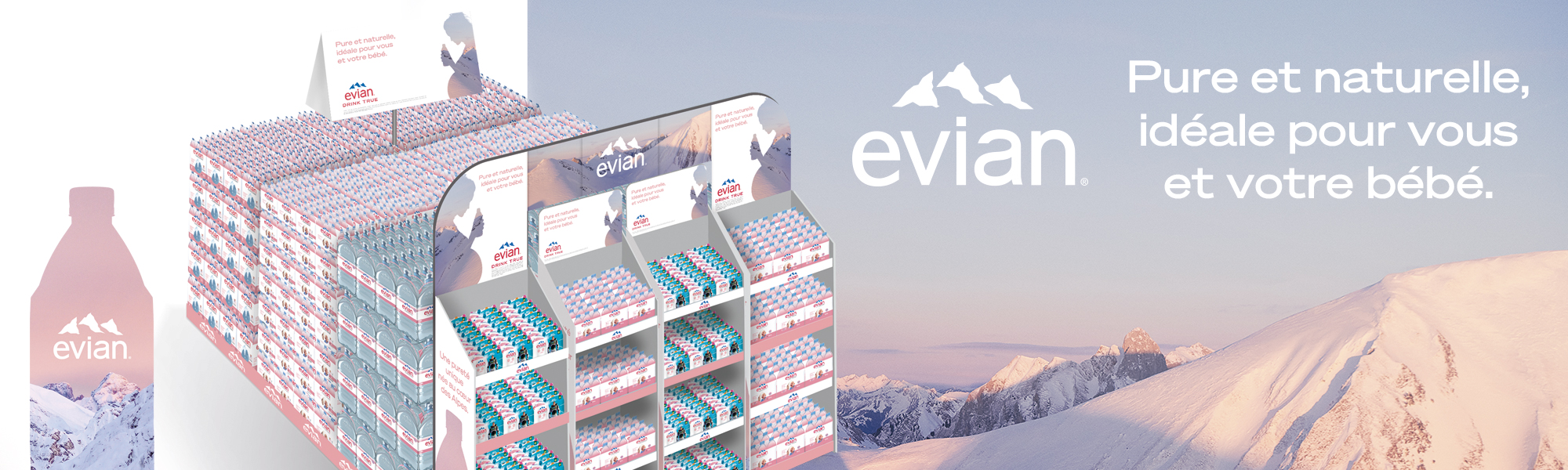 Pour son temps fort puériculture, Danone Eaux France a de nouveau fait confiance à Trapèze, pour mettre à l’honneur sa gamme Evian pure et naturelle, idéale pour vous et vos enfants !